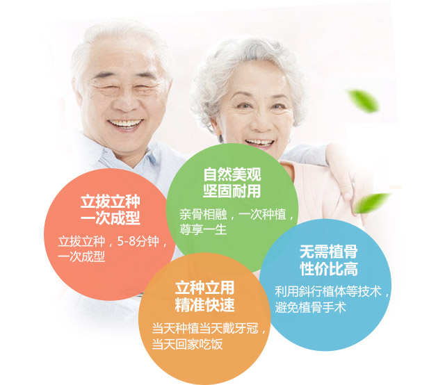 " 立得用"种植牙体系不是一项单一种植牙技术,而是一套完整的种植牙体系。突出特点:"立种立食",当天种植, 当天即可回家吃饭咀嚼。